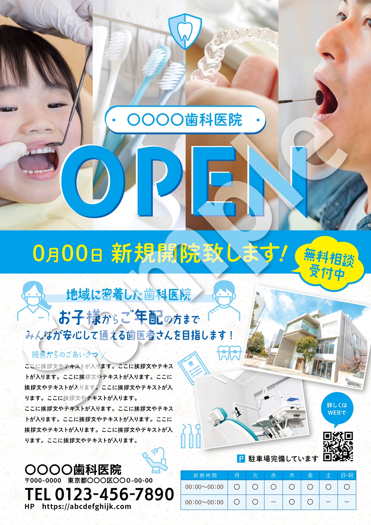 歯科・歯医者_開業・オープンチラシ・フライヤーの無料デザインテンプレート - ネット印刷グラフィック。