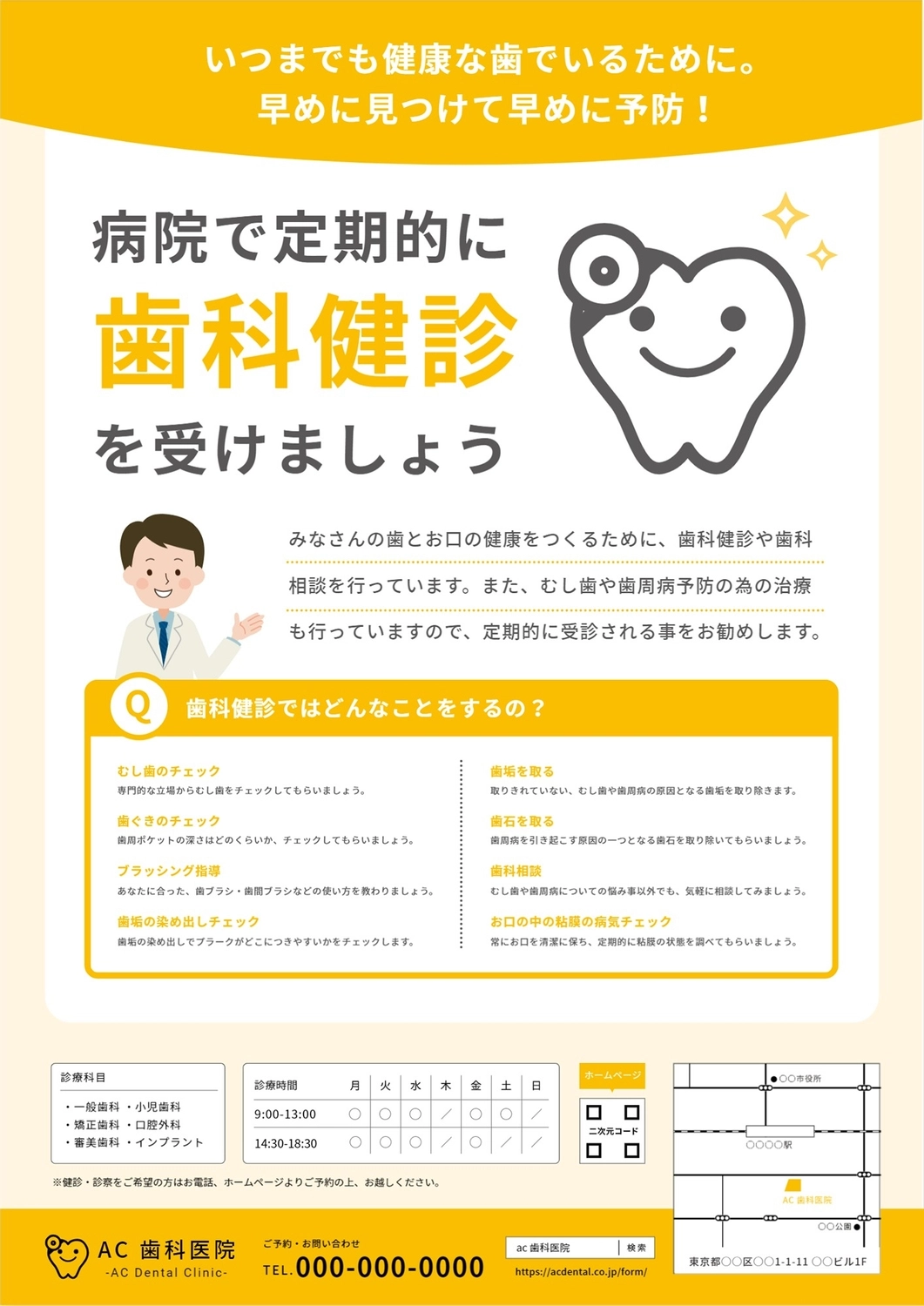 歯科健診 黄色 の無料チラシテンプレート 6935 - デザインAC。