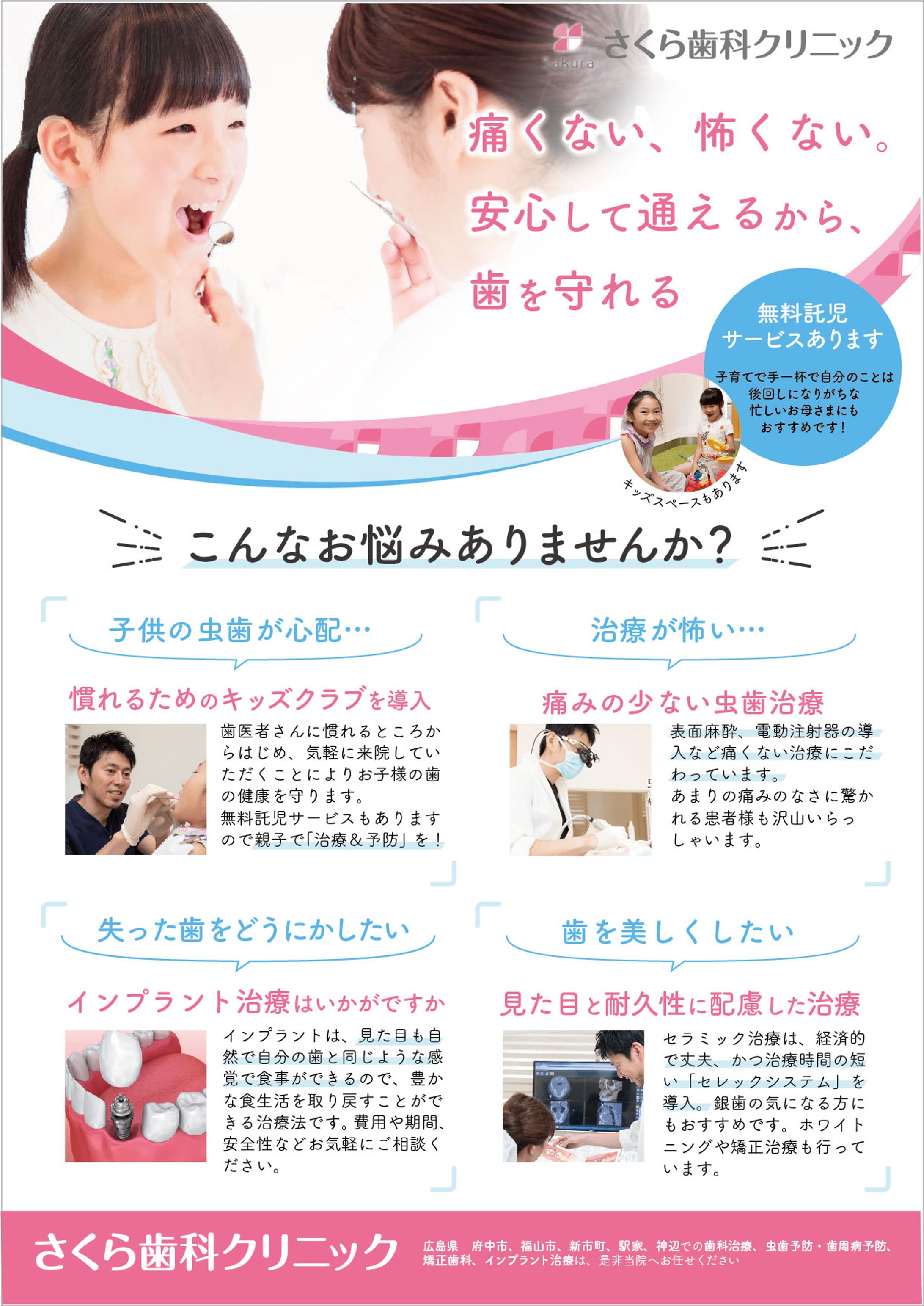 歯科医院向けサービス案内チラシのデザイン作成事例キャッチコピーに悩みを入れる集客チラシラボ。