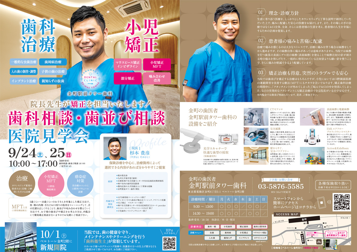 歯科医院新規開業に伴う内覧会のチラシデザインと印刷アリキヌ:チラシ制作部。