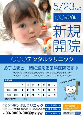 歯科医院開院チラシ・歯科医院オープンチラシ・歯科医院開業チラシ病院・介護など医療に特化したチラシを簡単作成3ステップ。