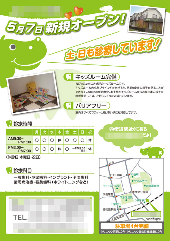 歯科医院OPENチラシ 自主制作名古屋市のデザイナー・イラストレーターハナイ。