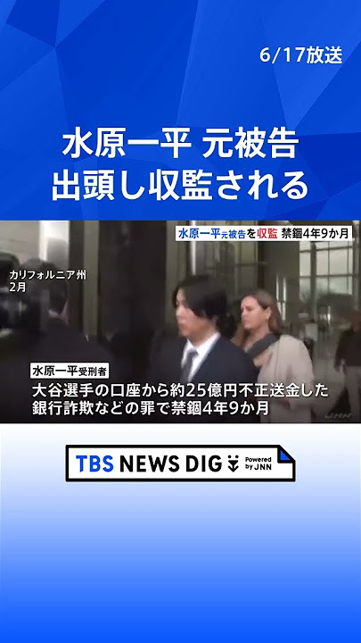水原一平元被告がペンシルベニア州の刑務所に収監される 禁錮4年9か月 大谷翔平選手の口座からおよそ25億円を不正送金TBS CROSS DIGwith Bloomberg。