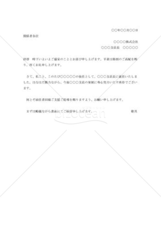 社長就任の挨拶文 縦書き bizocean ビズオーシャン。
