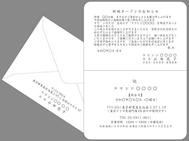 挨拶状 店舗開店・新規オープン 例文と書き方マナー簡単印刷プリントメイト。