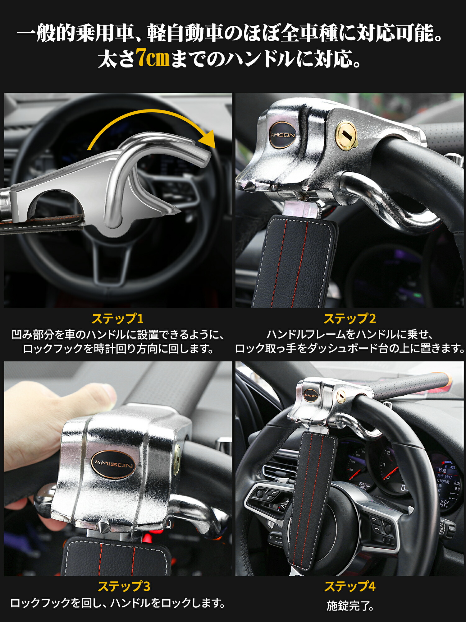 Amazon.co.jp:ほぼ全車種対応 ハンドルロック ステアリングロック 盗難防止 車 最強 車両 リレーアタック CANインベーダー 対策グッズ窃盗対策 ワイヤーロック カーセキュリティー 汎用 アルファード プラド レクサス プラド ランドクルーザー 防犯 幅広い車種に対応。