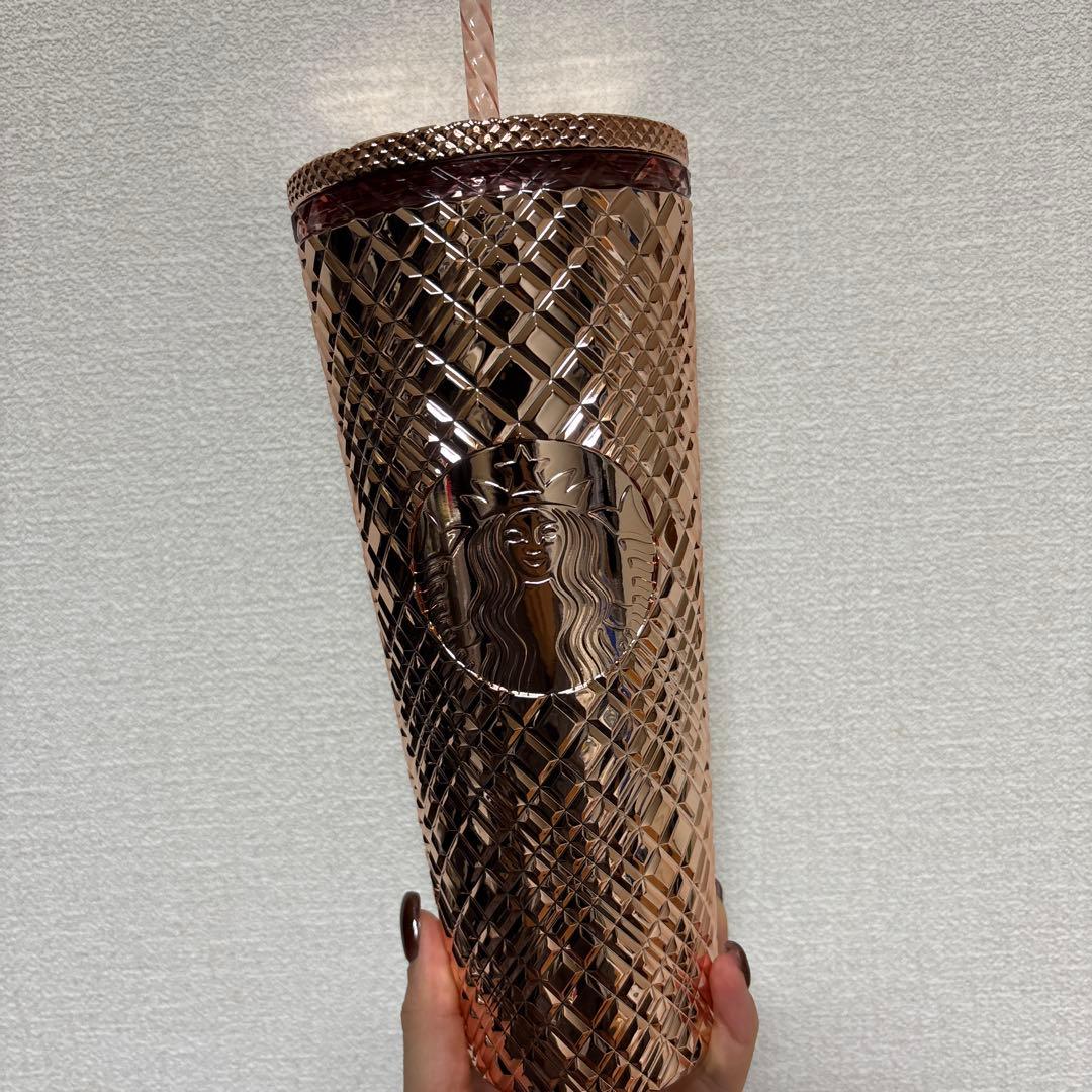 スタバ タンブラー ロゴゴールドコールドカップ タンブラー Starbucks - スターバックス ロゴコールドカップタンブラーゴールド710mlの スターバックススタバ ロゴコールドカップタンブラー バンピーグレー 710ml。
