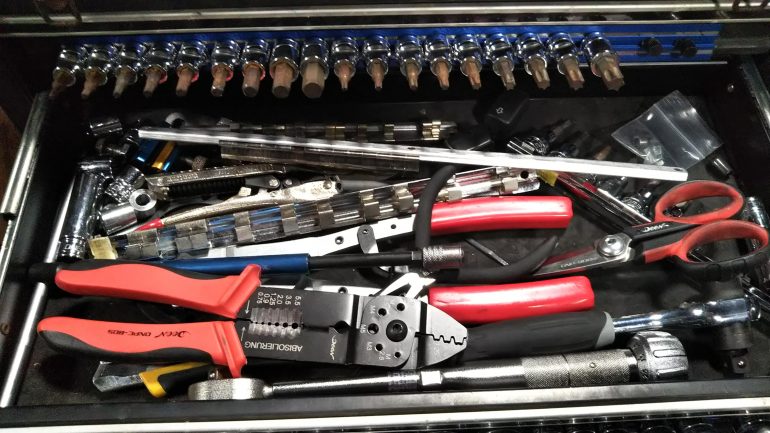 溢れかえった工具箱を整理してみるファクトリーギア。