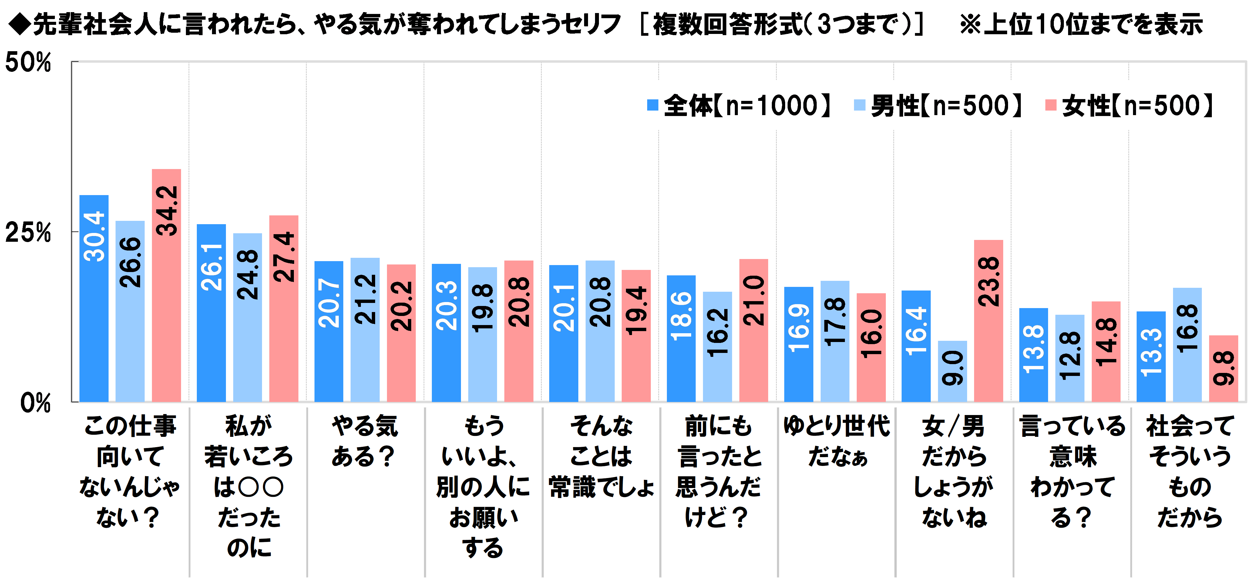 後輩たちが「仕事のやる気が出る言葉・なくす言葉」ランキング1位は。