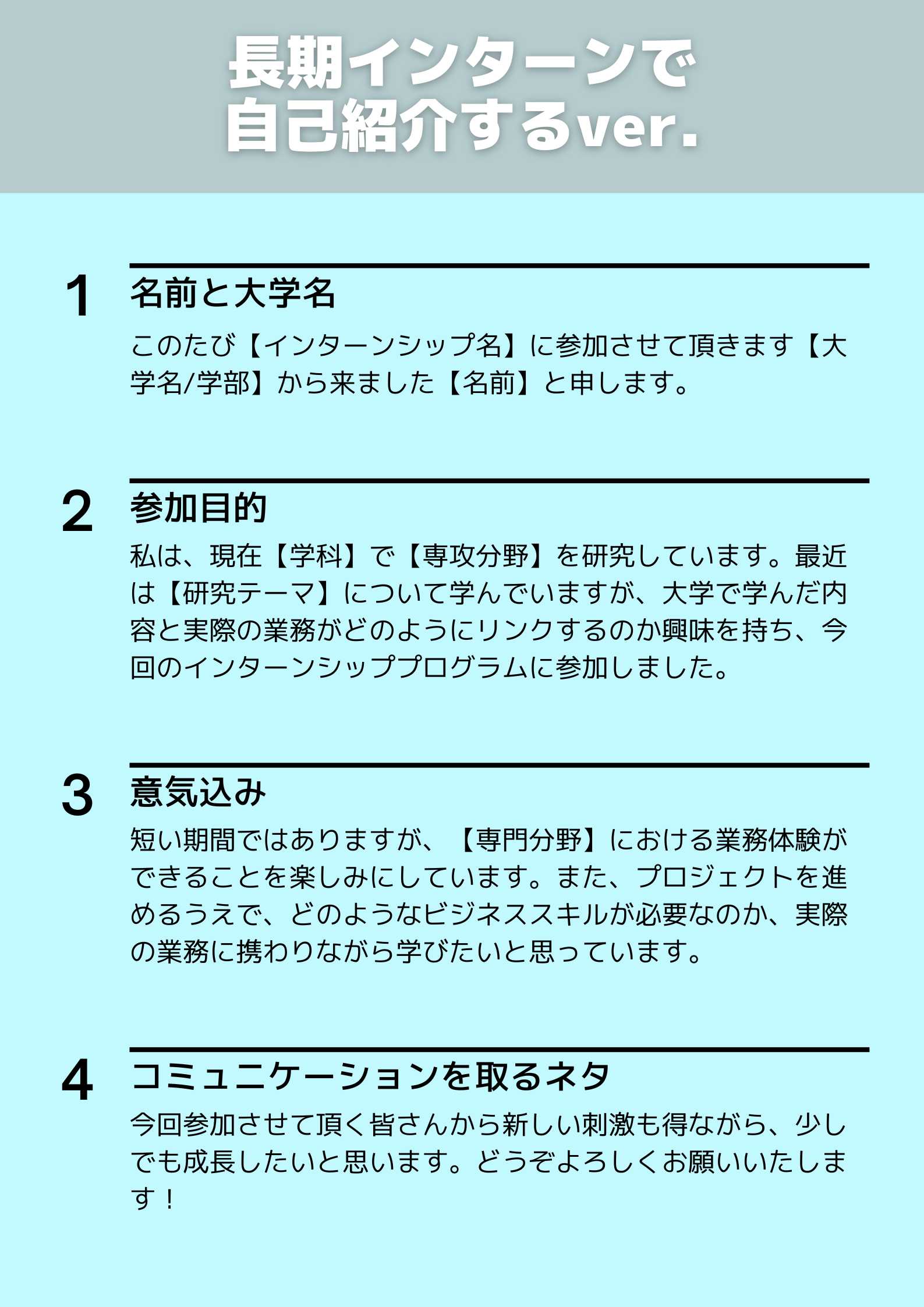 例文10選 インターンシップの自己紹介では何を伝える?話すときのポイントも紹介キャリタス就活。