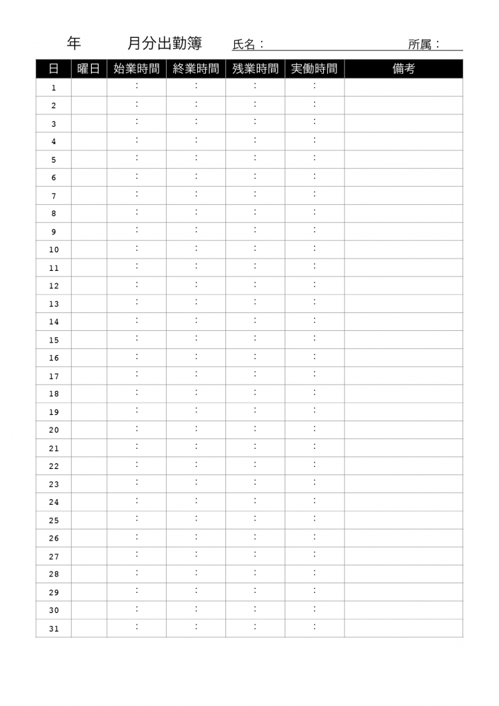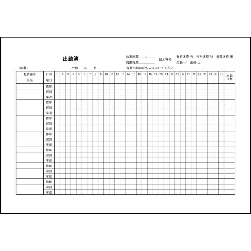 出勤簿04 勤務時間記録表 bizocean ビズオーシャン。