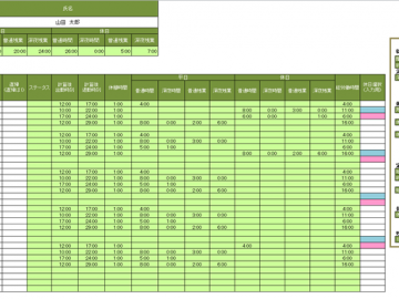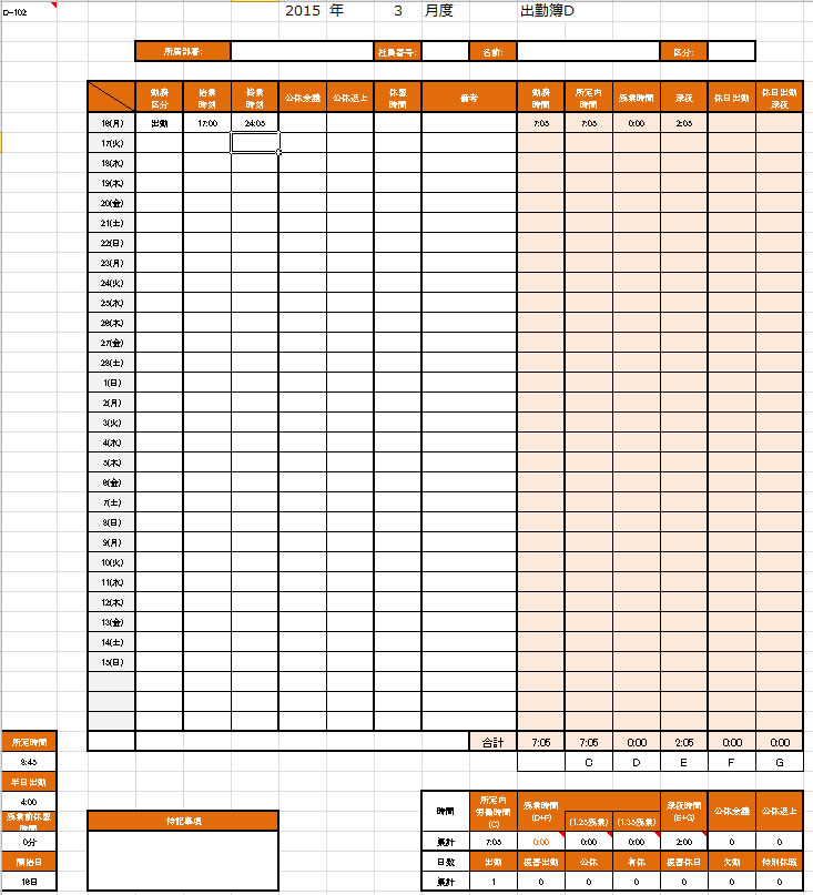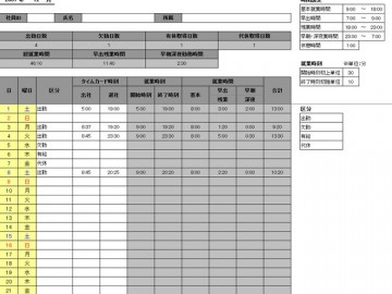 社員の勤務時間計算用テンプレート 「自動計算できるEXcel形式の勤怠管理表」EXCEL勤怠テンプレート。