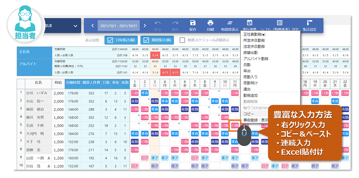 スケジュール シフト管理機能勤怠管理・人事給与システム市場シェアNo.1 KING OF TIME キングオブタイム。