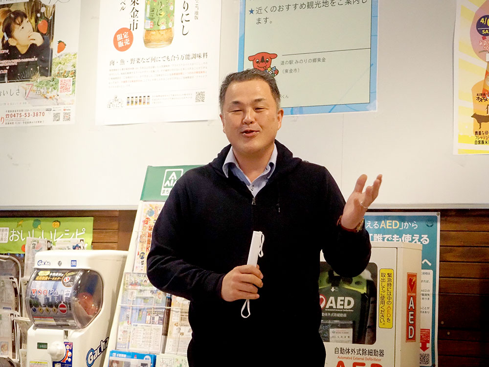 入荷情報 3月29日 今関駅長、最後の朝礼。お漬物用高菜入荷しています!道の駅 みのりの郷東金 千葉県東金市。