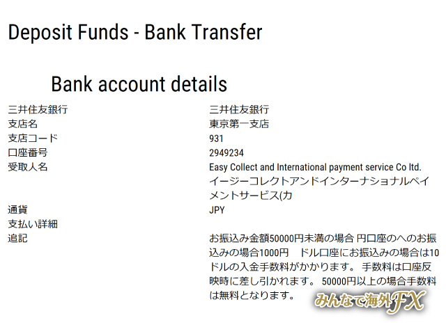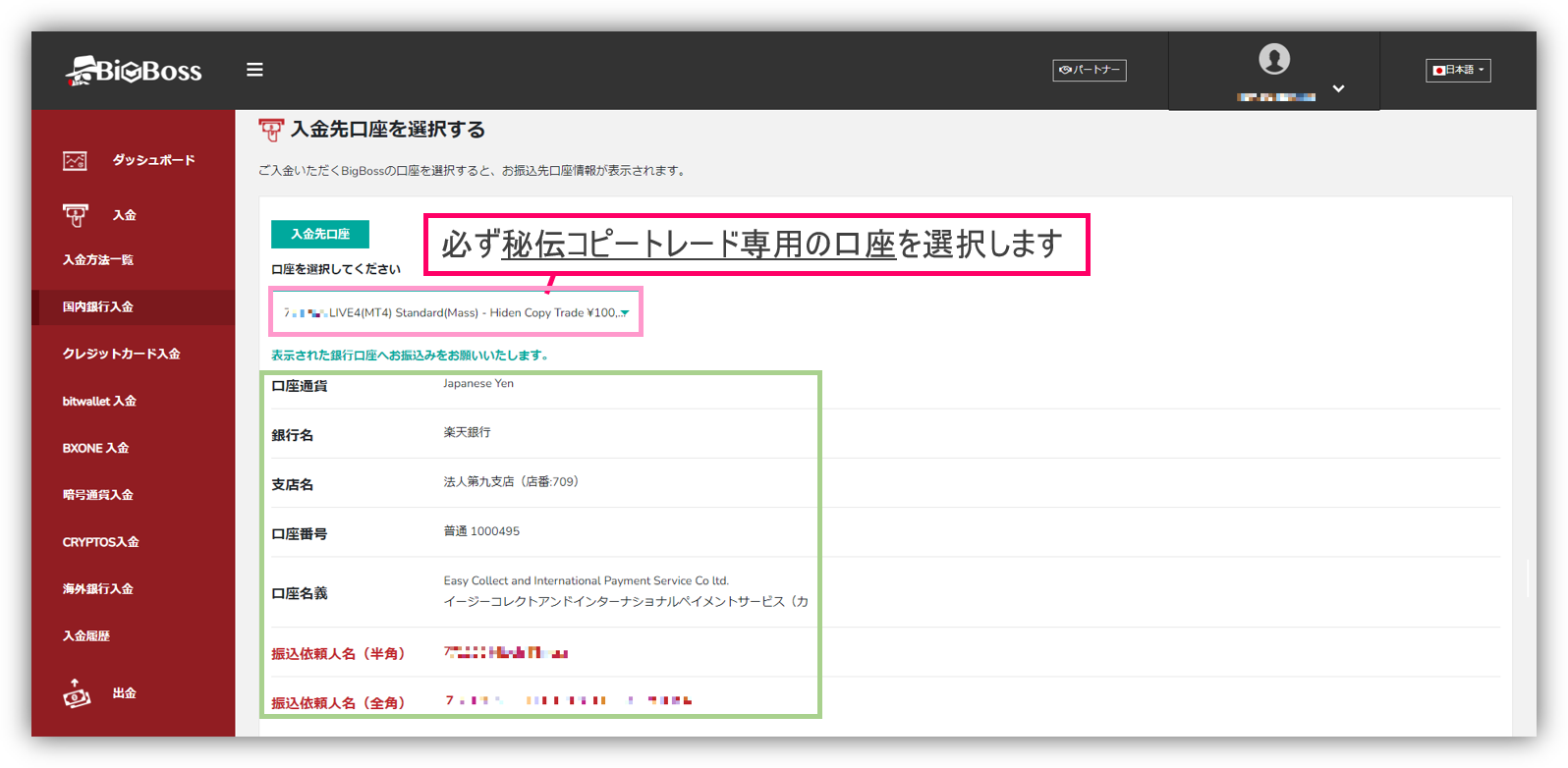 BigBoss ビッグボス 取引口座への入金・出金方法。