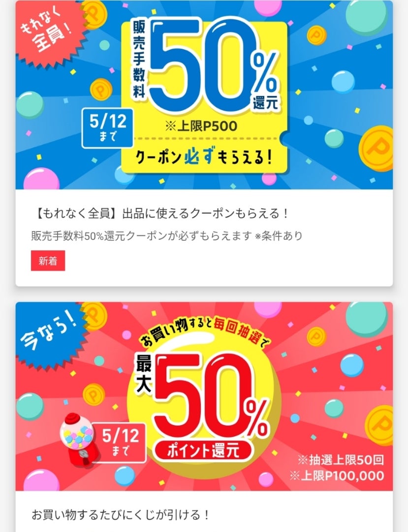 メルカリ:販売手数料50%還元クーポンの有効期限は人により異なる!今すぐ確認を~!!ココホレ猫パンチのメルカリ・節約生活。