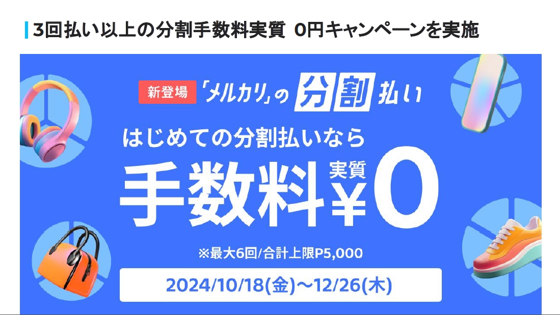 11 15~12 14 メルペイなら分けて払っても手数料無料キャンペーン開催!メルペイ メルカリアプリでかんたんスマホ決済。