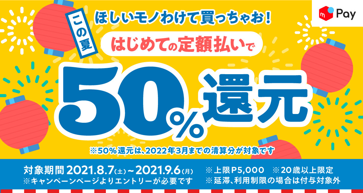 8 7~9 6 はじめての定額払いで50%還元キャンペーン開催!メルペイ メルカリアプリでかんたんスマホ決済。