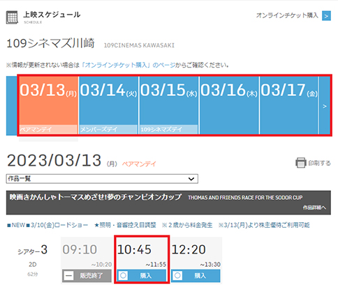 チケット購入方法 - 109シネマズ109CINEMAS。