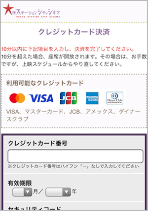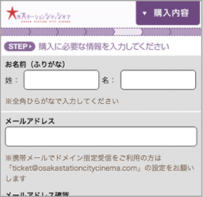 インターネットチケット購入 購入方法大阪ステーションシティシネマ共通ページ。