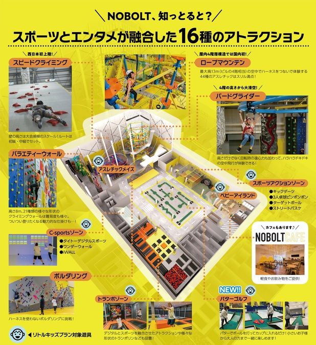 国内最大級の屋内型スポーツ・アスレチック施設「NOBOLT」が9 14 土 マリノアシティ福岡に誕生!ウォーカープラス。
