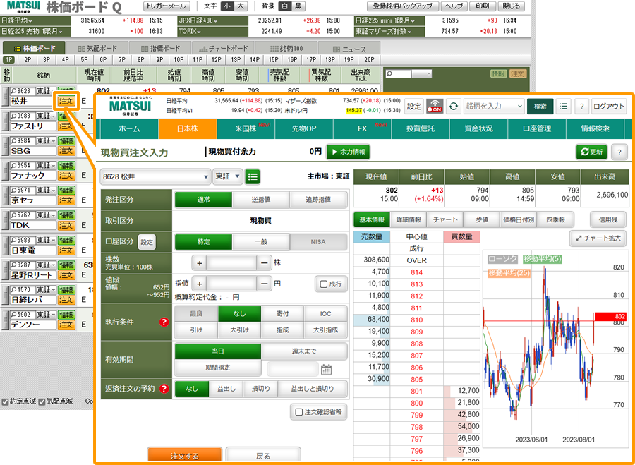 ダイワの自動更新株価ボードサービス・機能についてオンライントレード ネット証券取引大和証券。