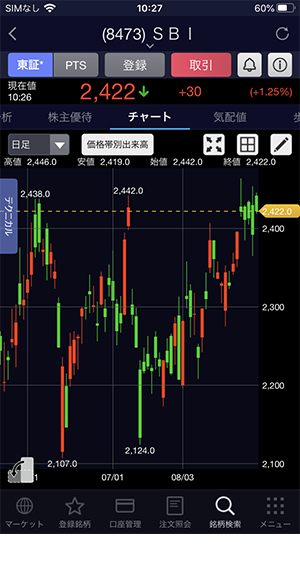 チャート機能マネックストレーダー株式 スマートフォンマネックス証券。