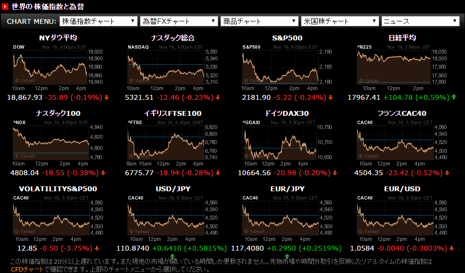 世界の株価と市況リアルタイムチャート 自動更新 OANDA証券。