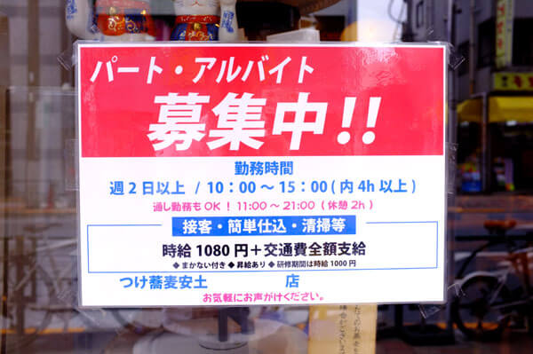 駅や商店街で見つけたアルバイト・パート・スタッフ募集のポスタ。