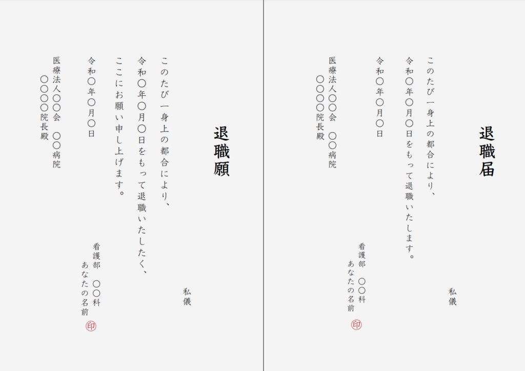テンプレートあり 看護師の退職願・退職届の書き方封筒や提出のマナーも解説看護roo! カンゴルー 転職。