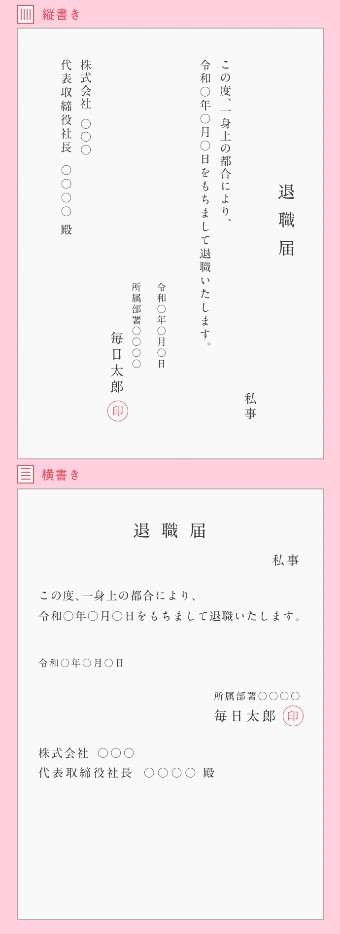 主婦パートの退職届の書き方を徹底解説! 縦書き・横書きマイベストジョブの種パート。