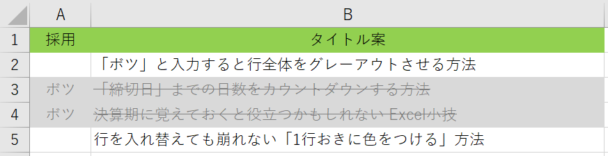 Excel エクセル完了した行をグレーにする方法ITSakura。