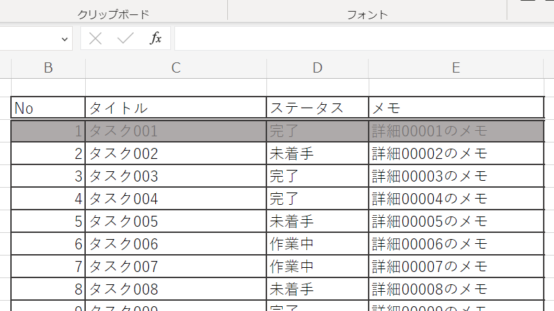 Microsoft365のExcelで完了行をグレーアウトする方法 条件付き書式。