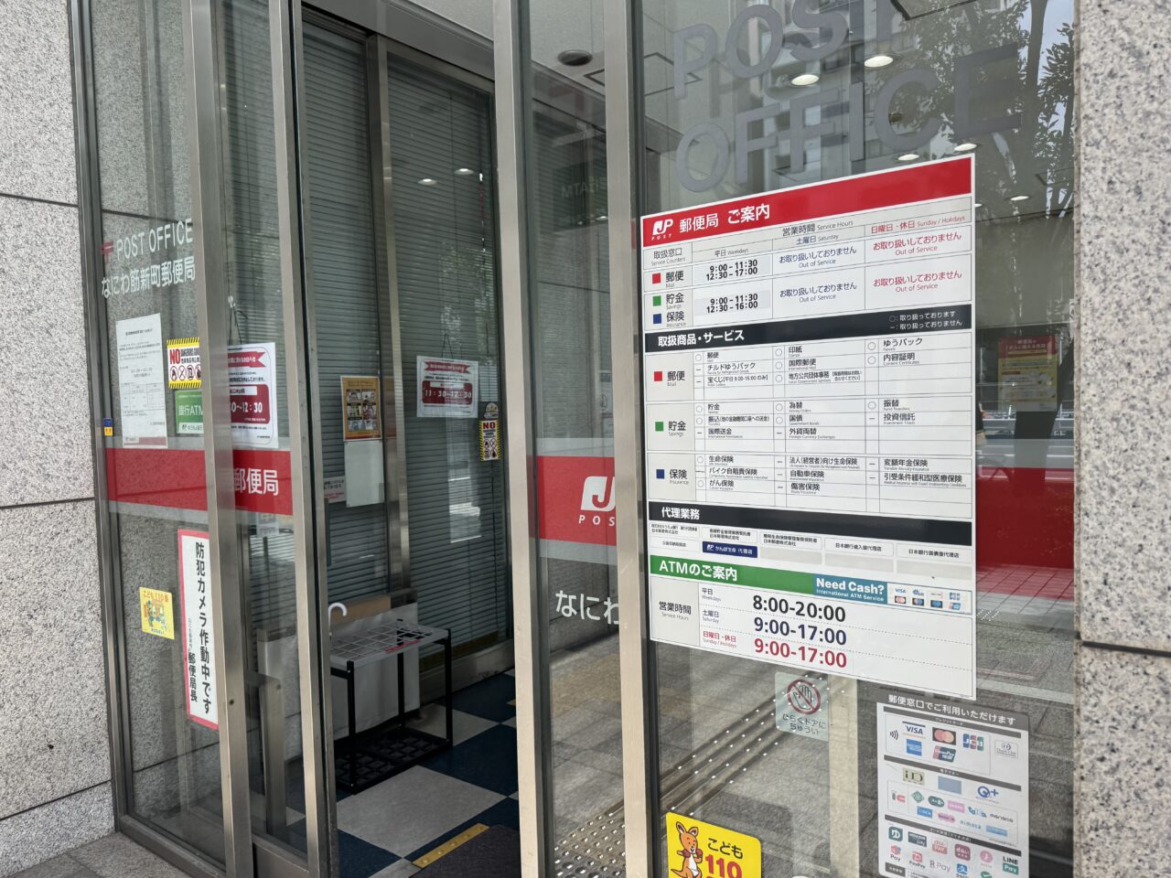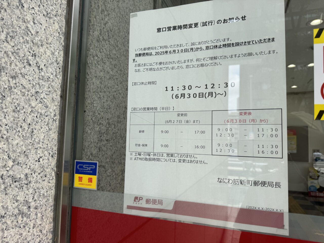 大阪市西区 新町 新町1丁目なにわ筋沿いの郵便局、なにわ筋新町郵便局さんの窓口営業時間が変更されていました。号外NET 大阪市西区。
