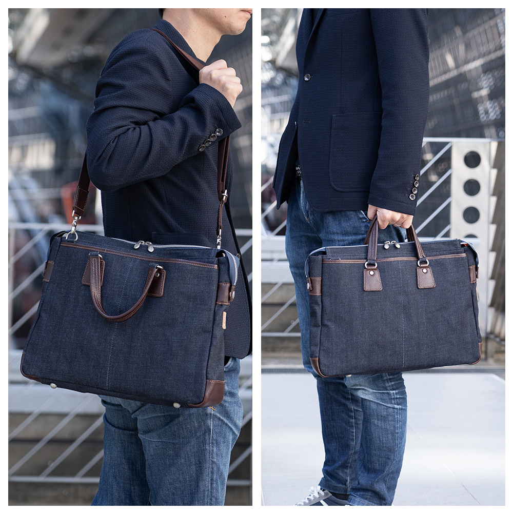 岡山デニム 薄マチビジネスバッグ 豊岡製鞄 - 帆布バッグのきき - 柿渋や天然染料で染めあげた大人の帆布バッグ。