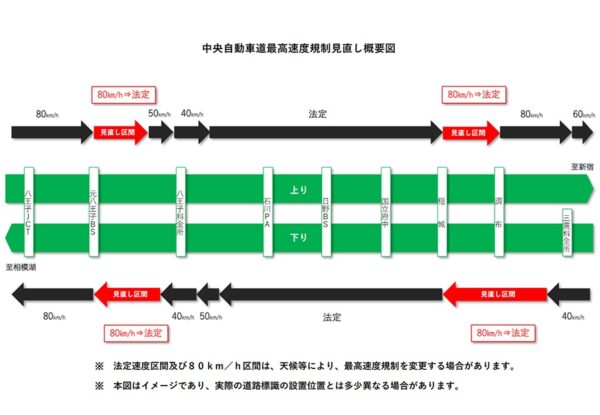 画像ギャラリー中央道「最高速度100キロ」引上げ区間が追加! 全線80キロ以下はもう過去? 実は細かく変動「取締りしてます」も乗りものニュース。