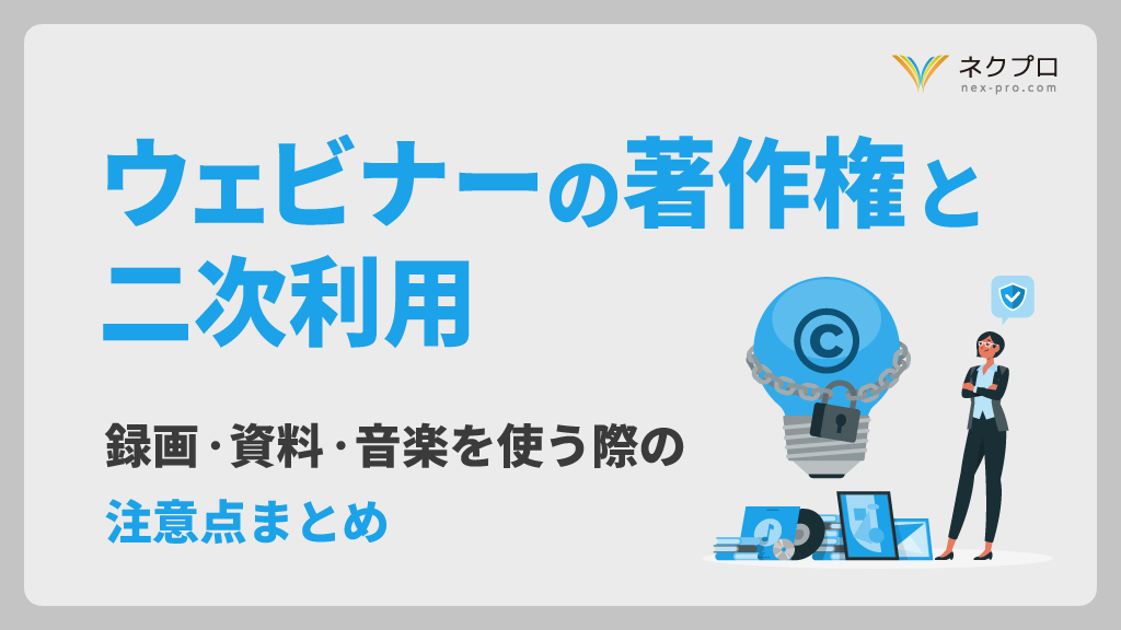 ウェビナーの著作権と二次利用録画・資料・音楽を使う際の注意点まとめウェビナー・動画配信プラットフォームのネクプロ。