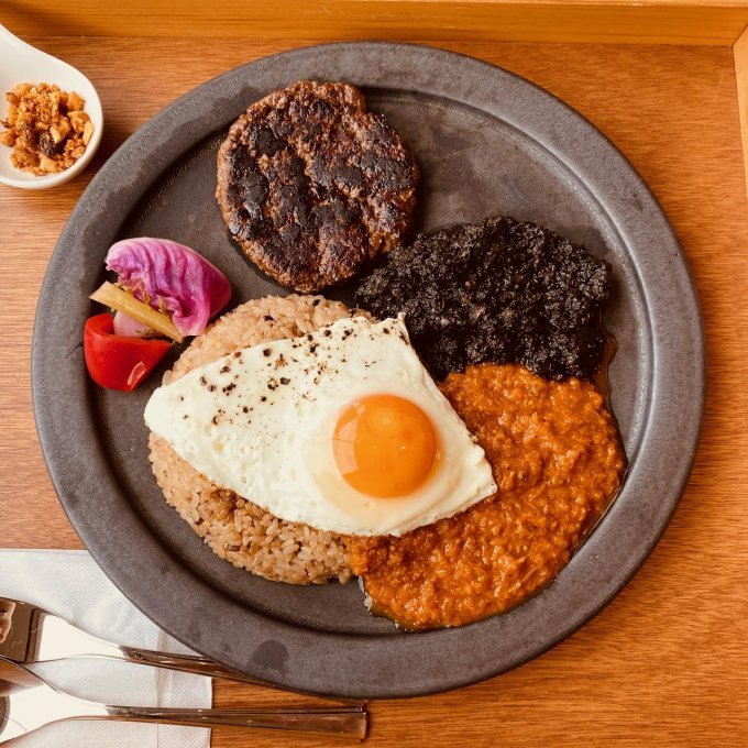 個人的おすすめトッピング スパイシーチキンカレーに温玉とチーズ🥚🧀 トマトの酸味が玉子とチーズでまろやかに🍛岐阜カレー岐阜ランチ岐阜カレーランチ岐阜グルメ岐阜レストラン長良カレー長良ランチ長良カレーランチ長良レストラン牛すじカレー。