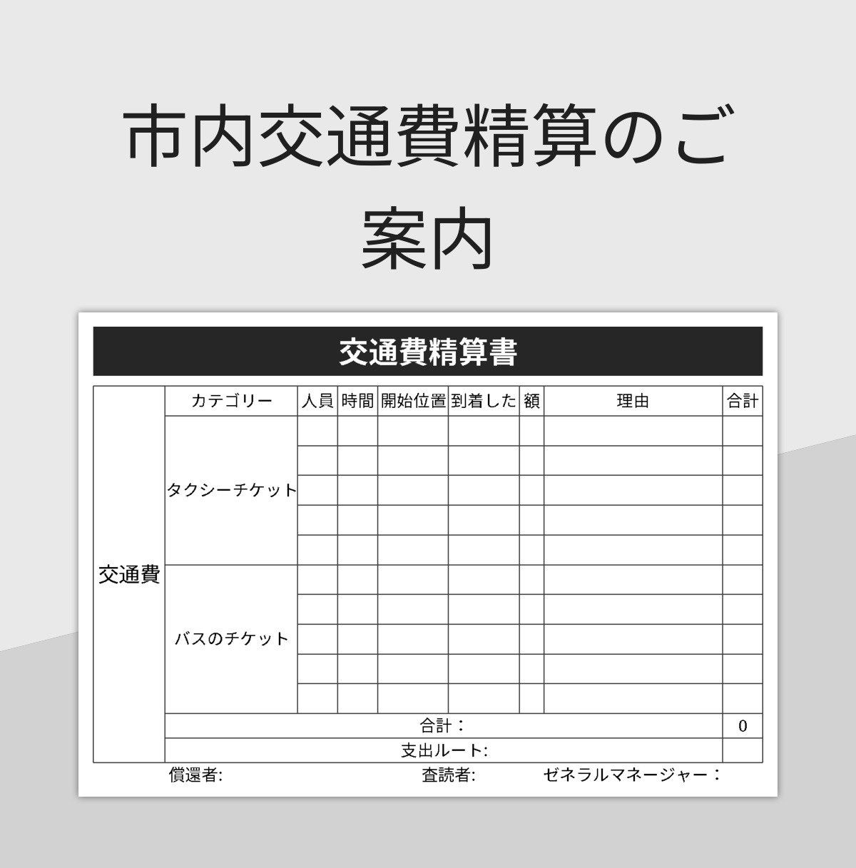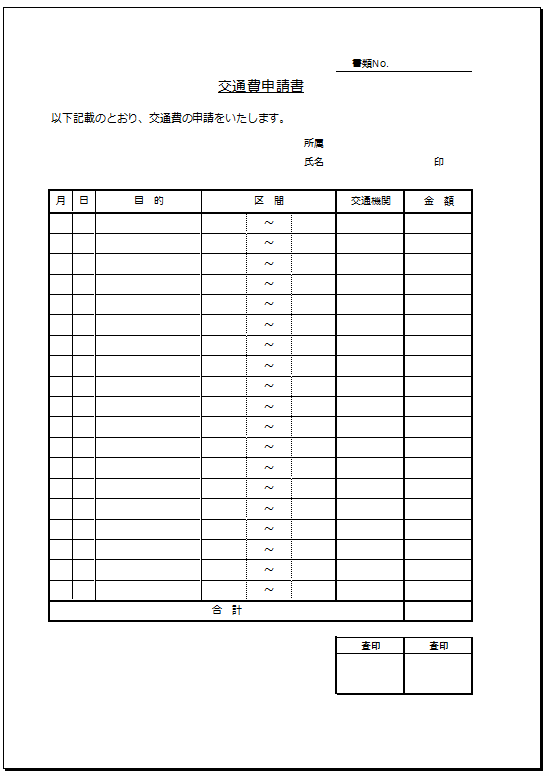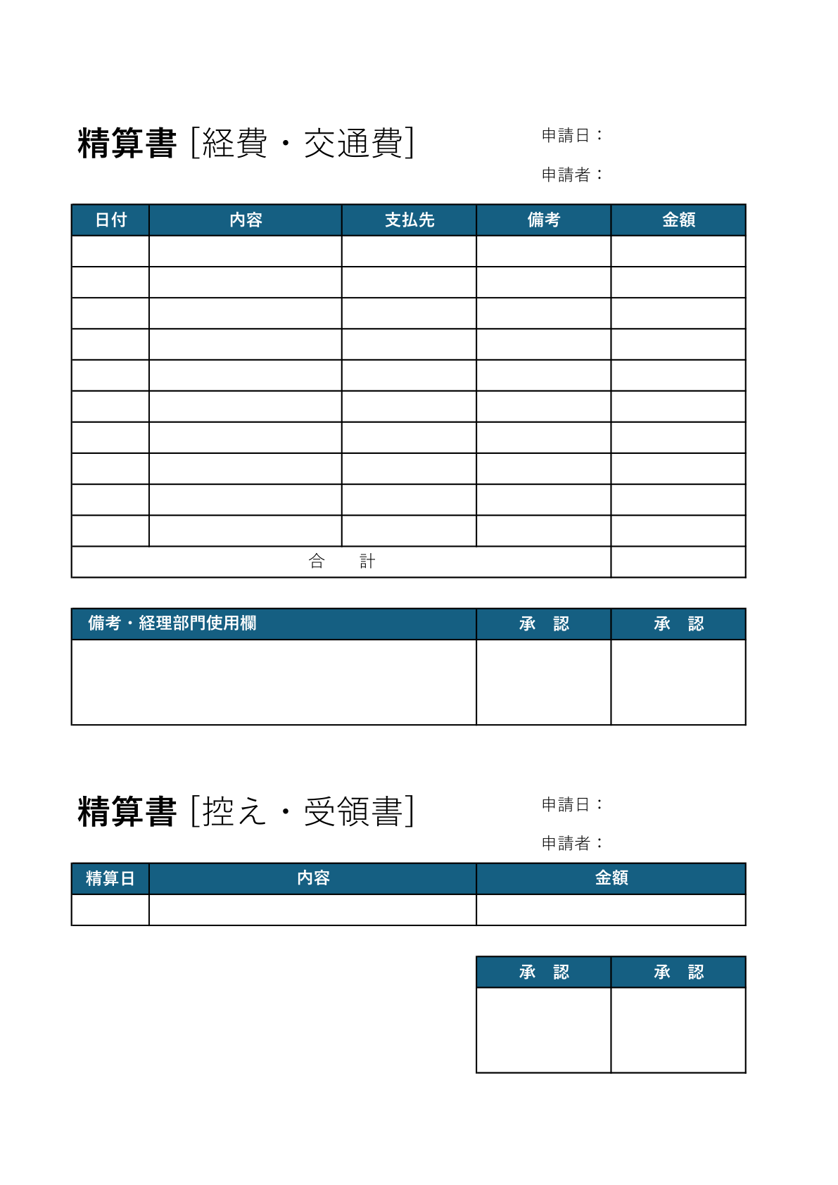 交通費精算書:2書式のファイルのテンプレートを無料ダウンロード - 登録不要のフリーテンプレート。