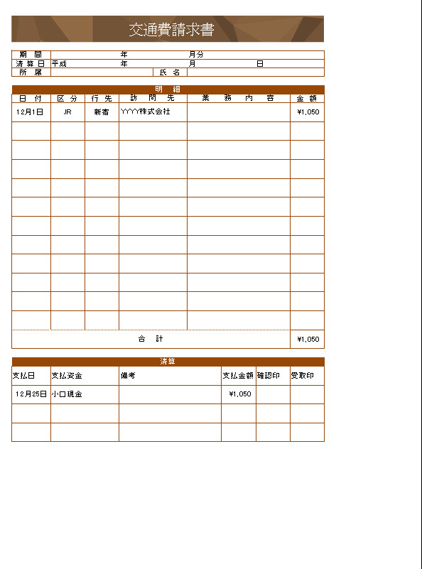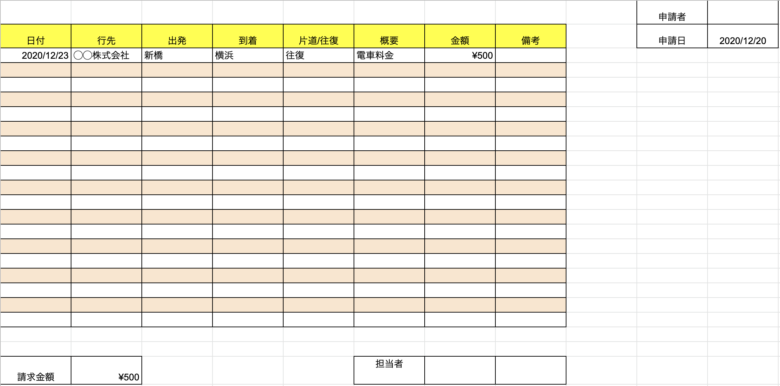 交通費精算書テンプレート 無料DL 個人事業主・会社員向け交通費申請書の書き方・計算表・請求書対応Bizroute。