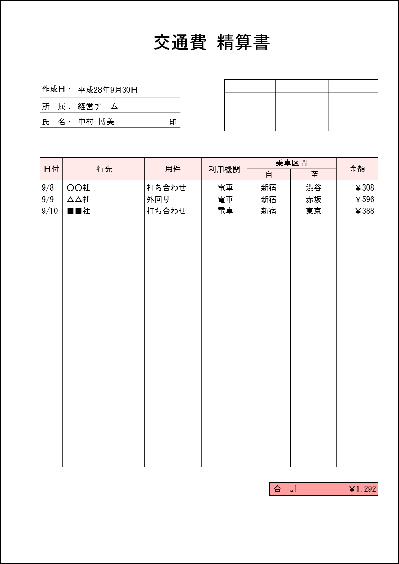 交通費精算書 見本4 のテンプレート│無料ダウンロード『日本の人事部』。