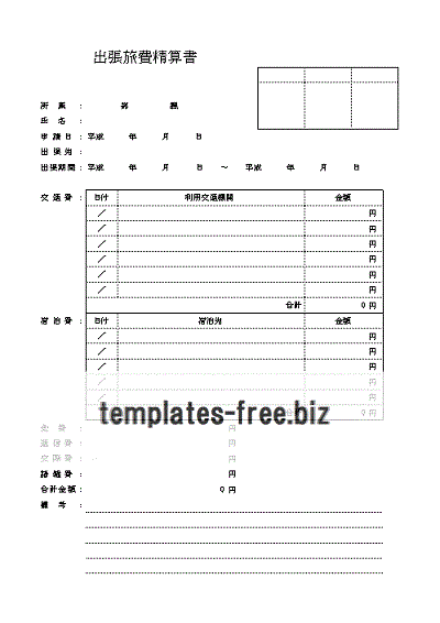 ◇旅費計算書◇出張交通費、宿泊費、日当などを精算できる無料テンプレート!無料テンプレートTemplateBox。