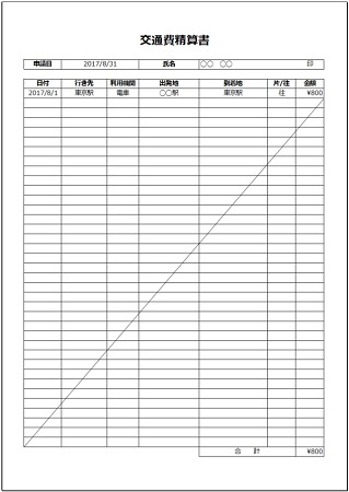 Excelで交通費精算書が使えます 入力補助つき!PC入力でも、印刷して手書きでもココナラ。