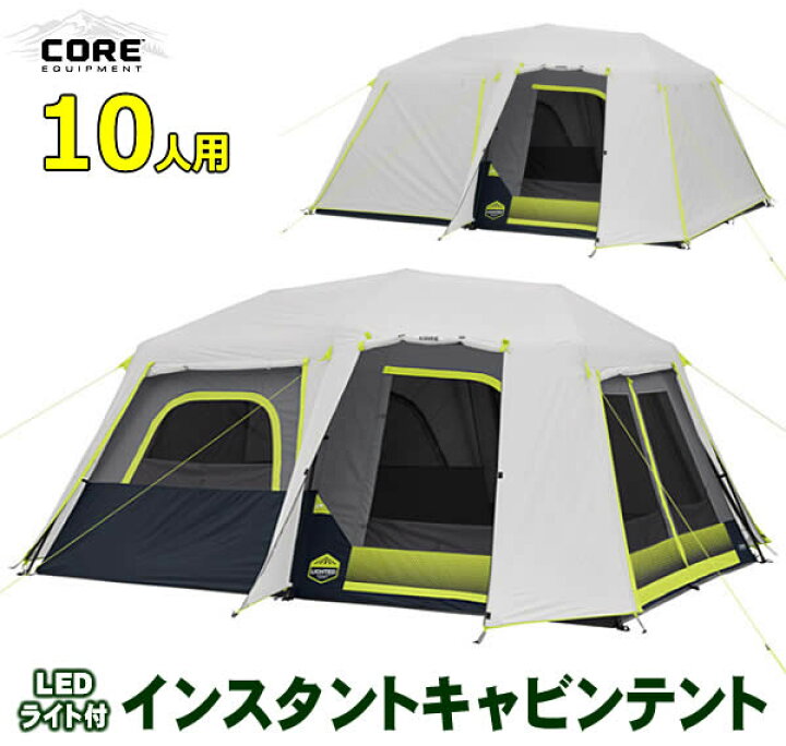 楽天市場送料無料 CORE コア 10人用 インスタント キャビン テント LEDライト付き 4.2m×3m 巨大テント コア 10人用テントLED照明付 大型 コストコ 値下げしました : ウイッチ。