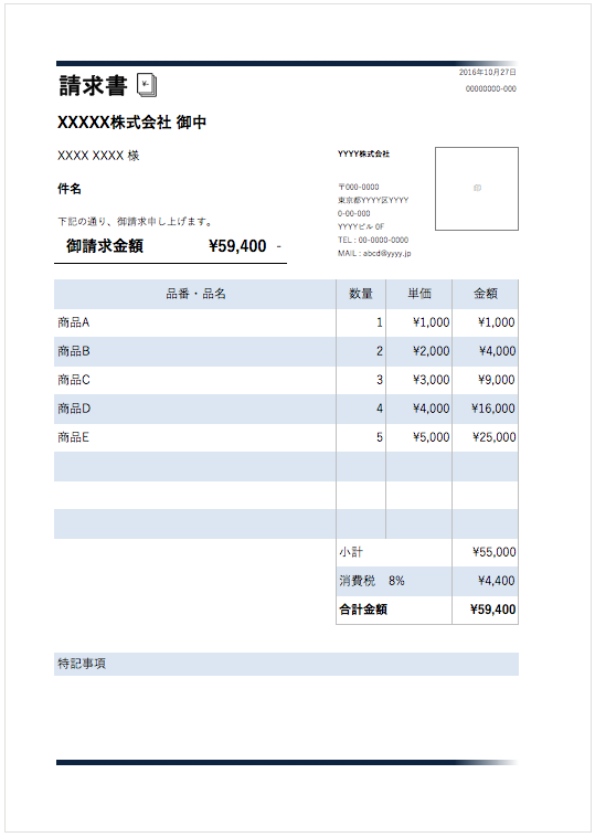 請求書の無料エクセルテンプレート・フォーマット- Misoca ミソカ - 弥生株式会社 公式。