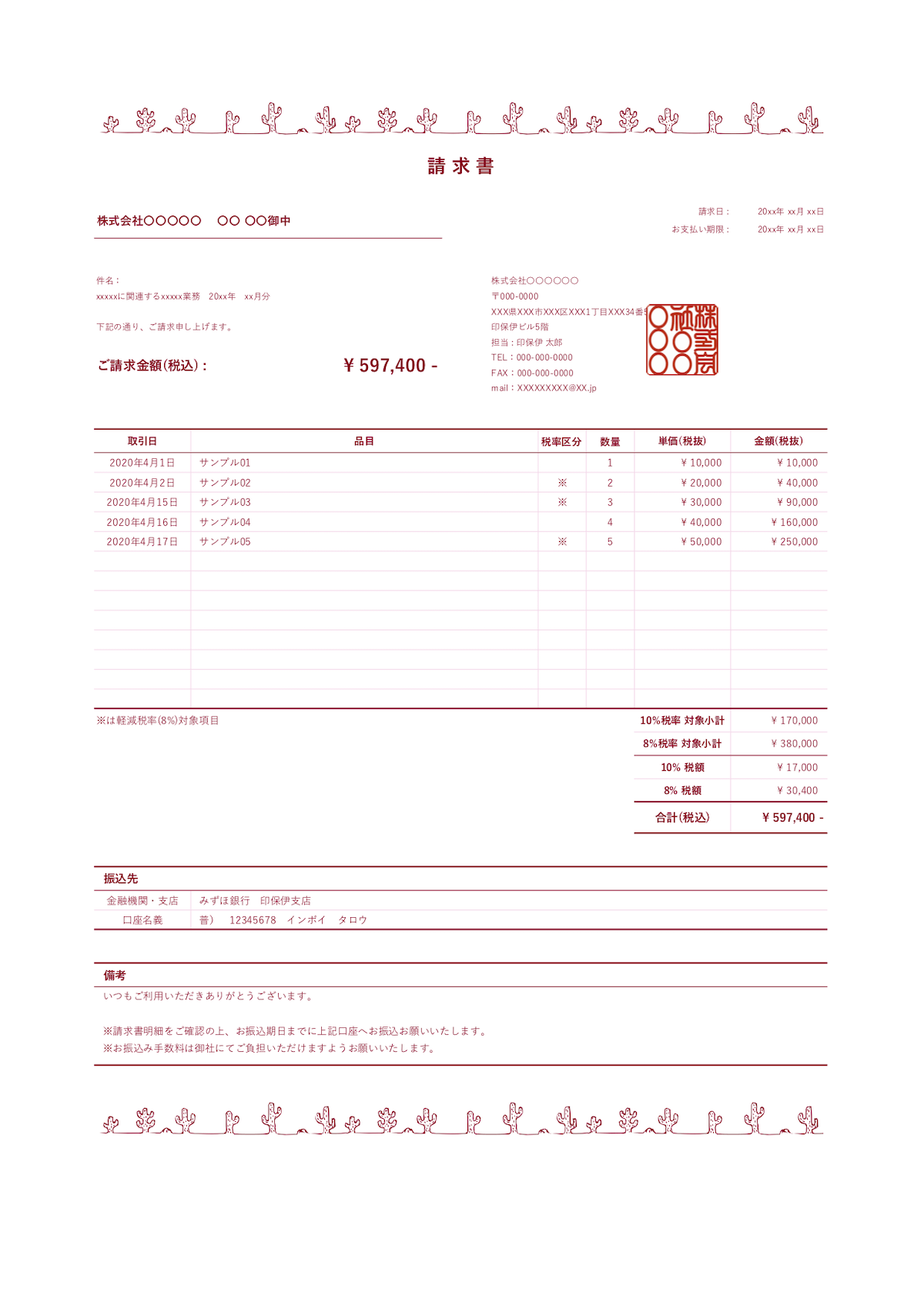 エクセル 請求書テンプレート 雛形 2無料イラスト素材素材ラボ。