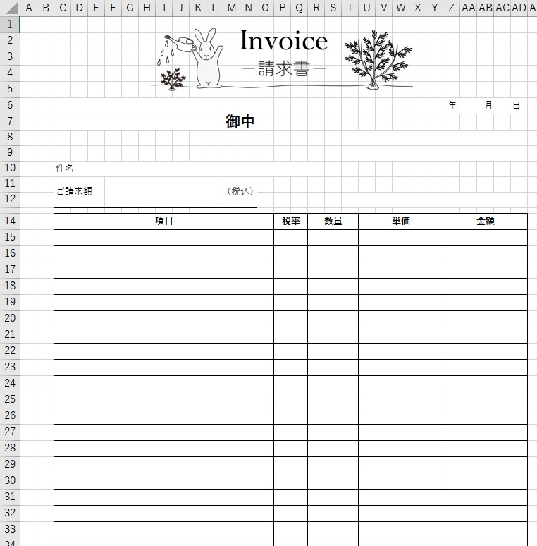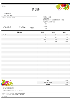 請求書 Excel 無料テンプレート「00018」は個人事業主におすすめのかわいい素材。