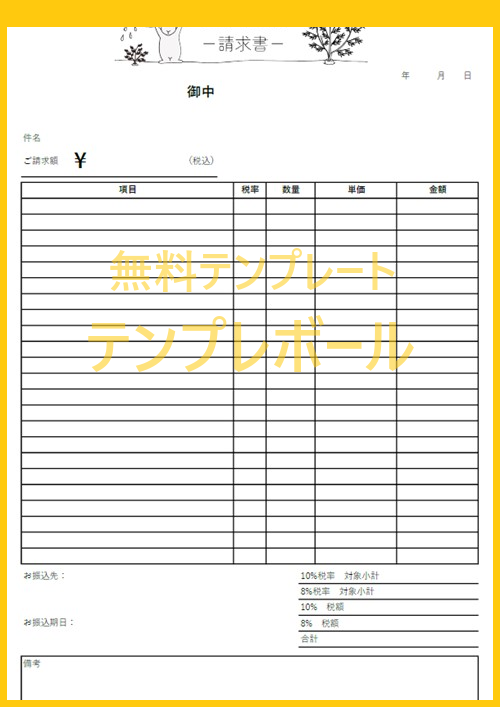 個人事業主におすすめ!エクセル編集出来るかわいい「請求書」無料テンプレートテンプレボール。