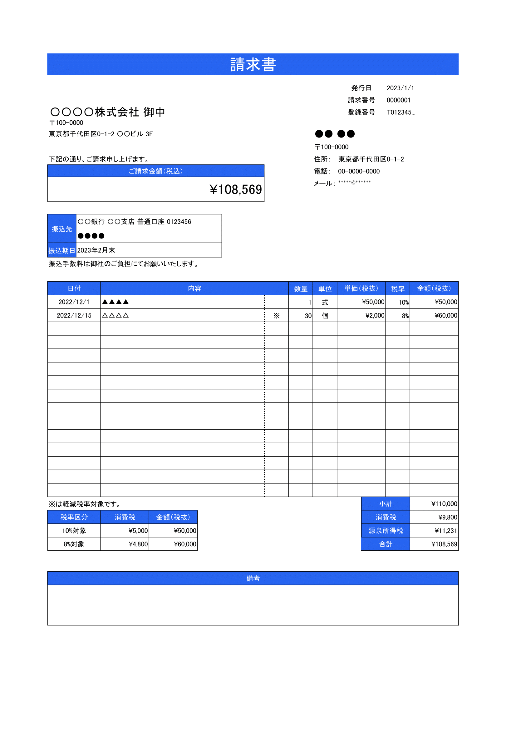 無料DL 個人向け請求書テンプレートPDF・Excel形式・インボイス対応済Bizroute。