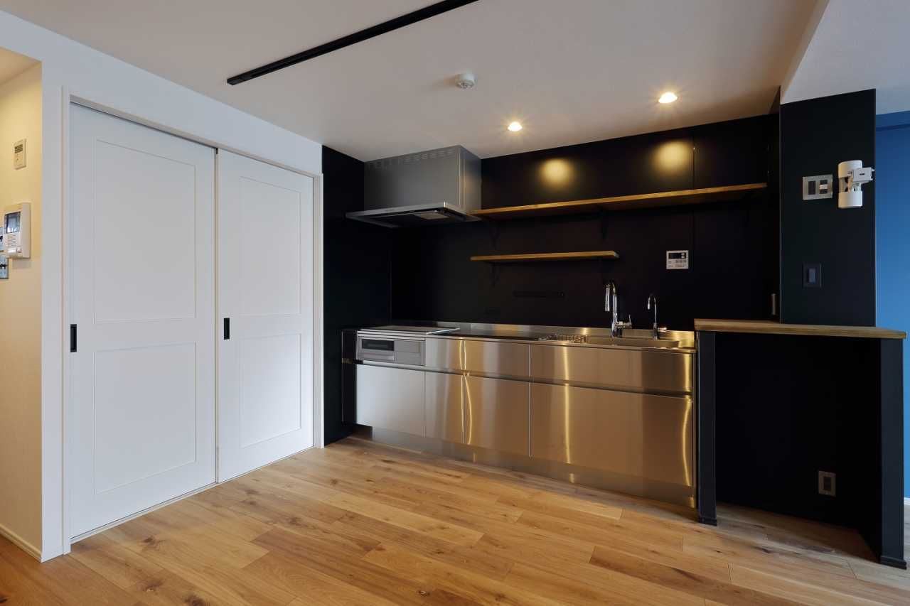 壁面にパントリー代わりの収納をつけた2階キッチン - 事例写真「オープン収納でおしゃれに暮らす家」注文住宅のハウスネットギャラリ。
